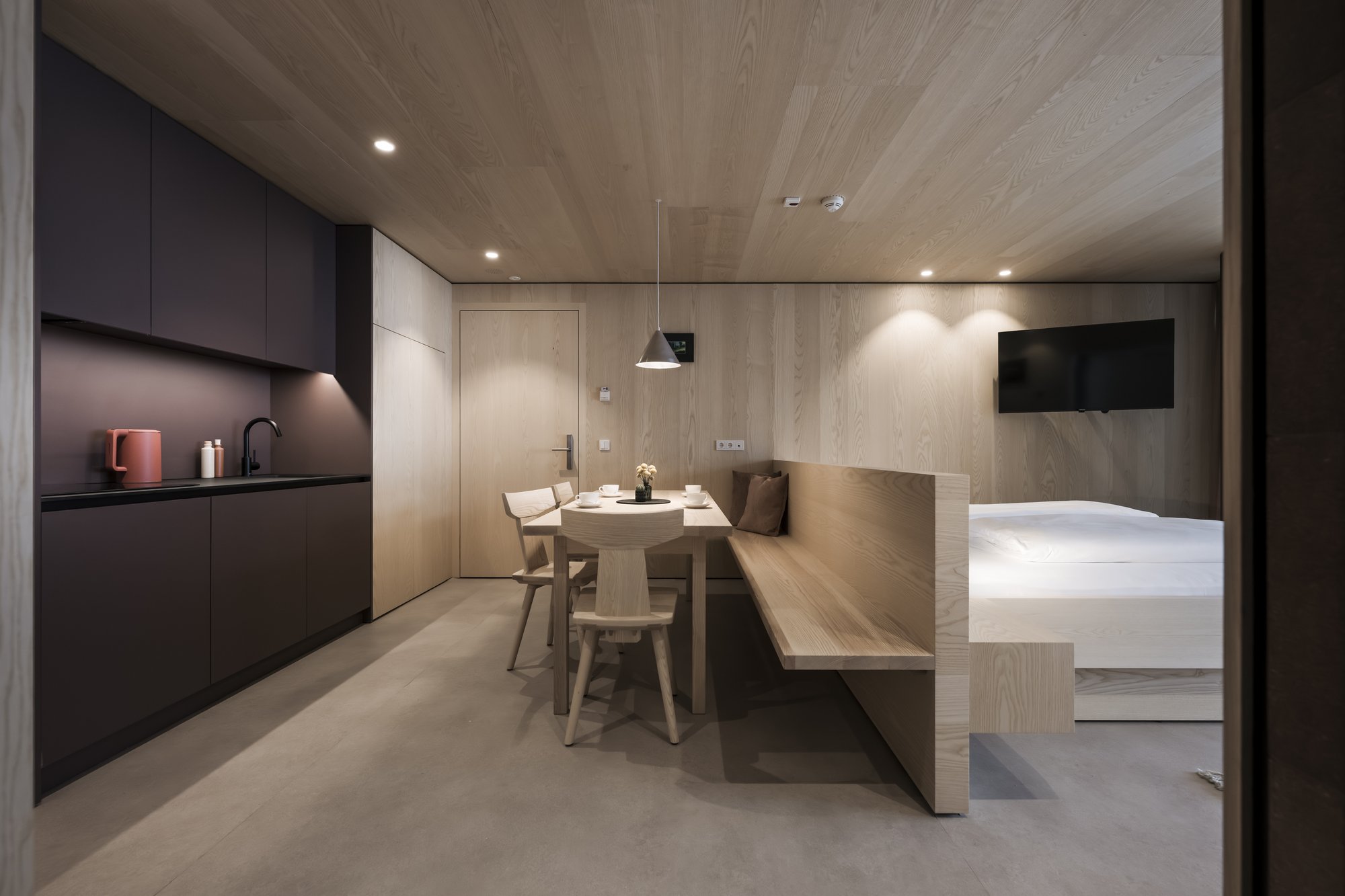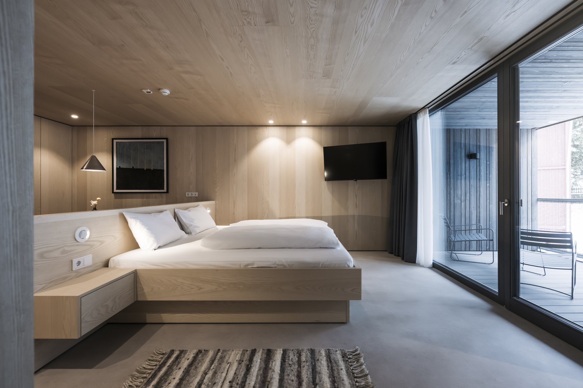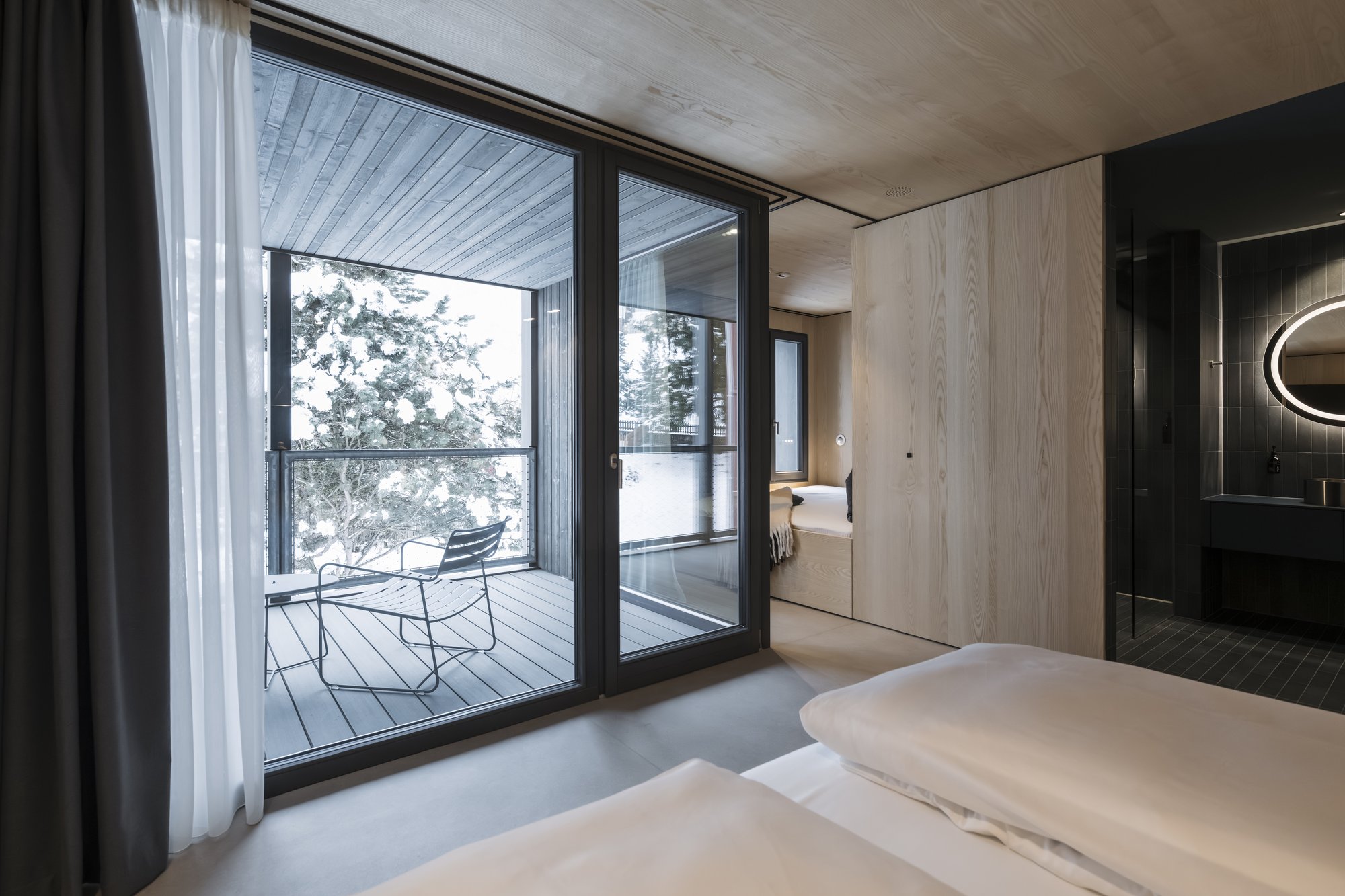 Le dodici apartsuite (da 45 a 100 m²) sono distribuite in due edifici e si distinguono per la loro architettura contemporanea ed essenziale, caratterizzata da linee pulite e materiali naturali. Legno chiaro, tonalità delicate e ampie vetrate creano ambienti luminosi con vista libera sul Baranci, sul giardino e, in inverno, sulle piste da sci.