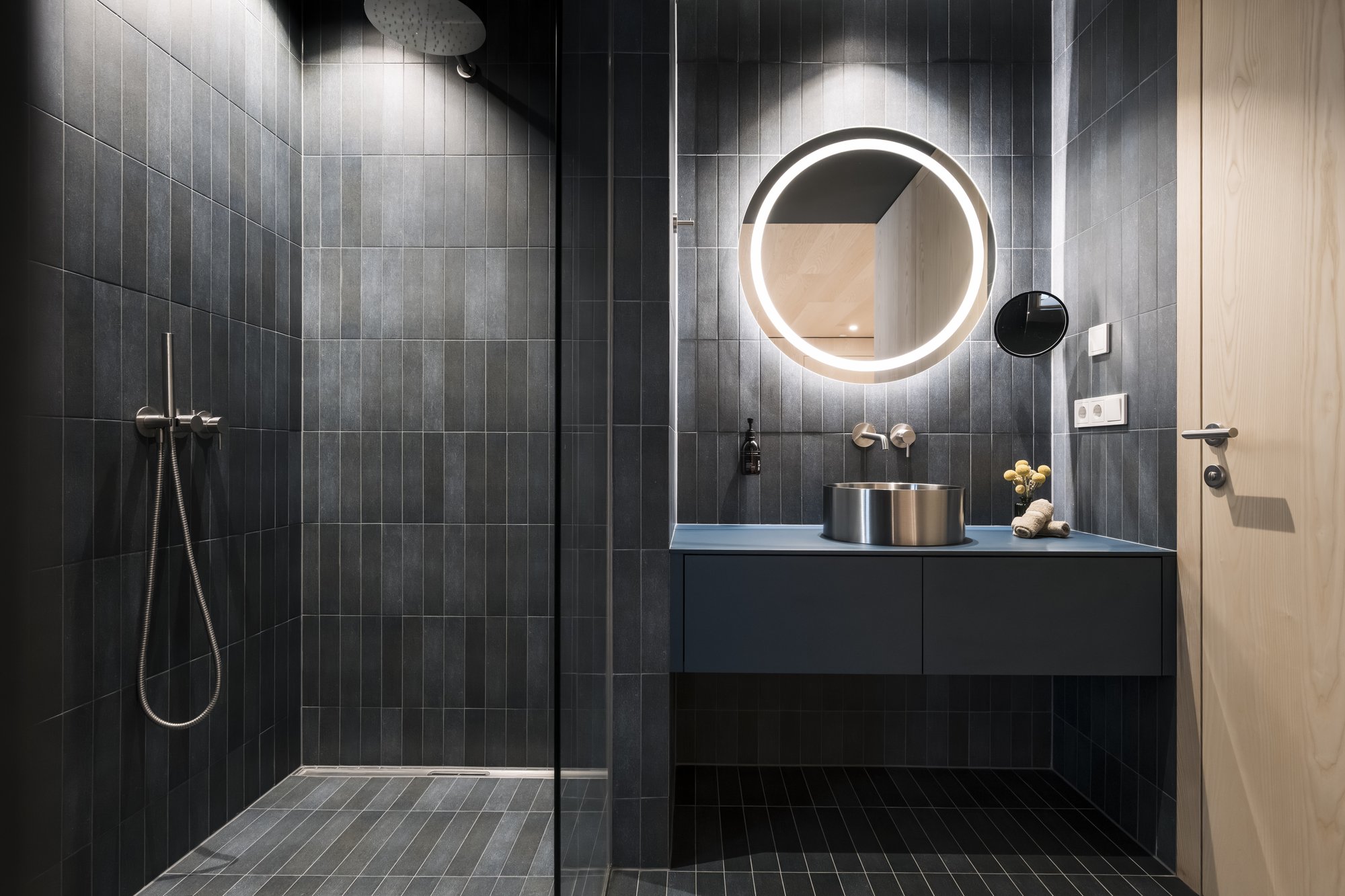 Dopo la sauna, potrai rinfrescarti sotto una doccia a pioggia, raggomitolarti nell’angolo relax e lasciar correre lo sguardo sul panorama. L'intimità del proprio appartamento rende la sauna una pausa personale di puro benessere.